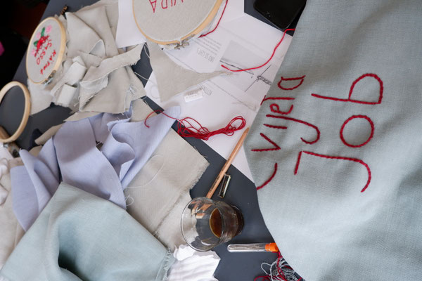 Julia Stolba, geboren 1993, ist Künstlerin und Kunstwissenschaftlerin. Sie forscht seit April 2021 in ihrer künstlerisch-wissenschaftlichen Promotion an der HFBK Hamburg zu Gewaltgeschichten in Archiven, transgenerationaler Übertragung von Trauma und der Bedeutung von Affekten in künstlerischer, kuratorischer und kunstvermittlerischer Archivarbeit. Sie ist Teil der Band INGLAM (Inglourious Art Mediators). Seit 2021 ist sie Teil des Teams der Wartenau HFBK Art Education. Zuvor arbeitete sie von 2018 bis 2022 im Team der documenta studien an der Kunsthochschule Kassel. Dort studierte sie Bildende Kunst (Diplom) und Kunstwissenschaften (MA). In ihrer konzeptuellen, künstlerisch-forschenden Arbeit an der Schnittstelle von Theorie und Praxis beschäftigt sie sich medial mit Malerei-Installationen, Zeichnung und Sound und thematisch mit widerständigen feministischen, antifaschistischen und antirassistischen Gegen-Geschicht(en) zum hegemonialen Wissenskanon.
